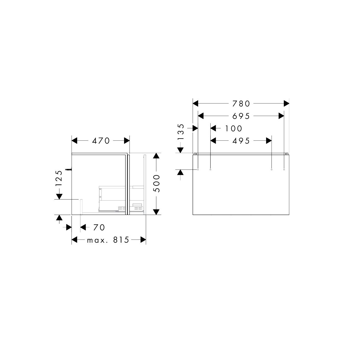 A Xilesa E by hansgrohe egyesíti a dizájnt és a funkcionalitást, hogy kényelmes és lenyűgöző élményt nyújtson. A fiók az elegáns árnyékrésnek köszönhetően könnyen nyílik. Nincs szükség meghúzott fogantyúkra. A mosdószekrény maximális tárolóhelyet biztosít - a helytakarékos szifonnak (külön megvásárolható: #54235000) köszönhetően nincs szükség szifonkivágásra!