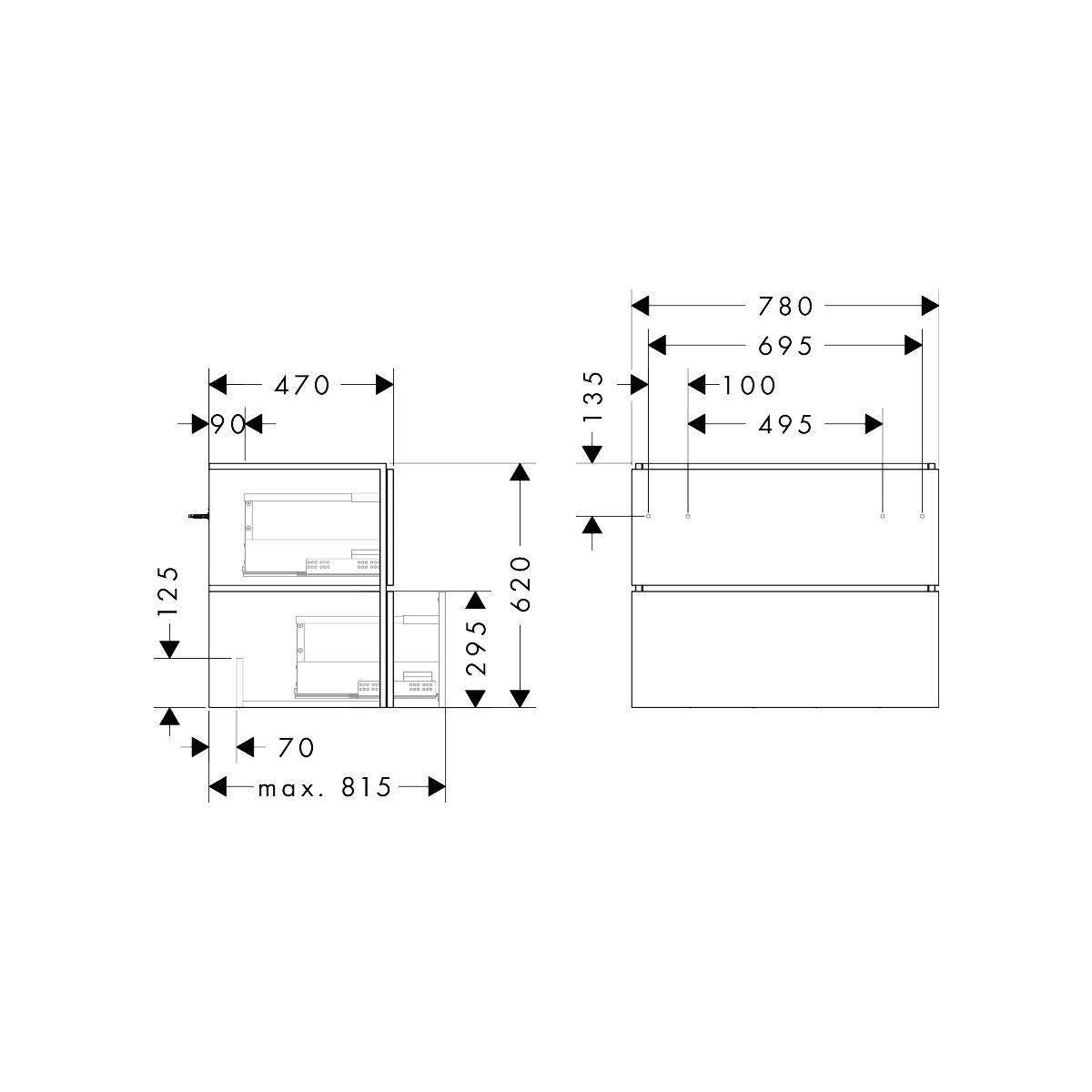 A Xilesa E by hansgrohe egyesíti a dizájnt és a funkcionalitást, hogy kényelmes és lenyűgöző élményt nyújtson. A fiókok az elegáns árnyékrésnek köszönhetően könnyen nyílnak. Nincs szükség meghúzott fogantyúkra. A mosdószekrény maximális tárolóhelyet biztosít - a helytakarékos szifonnak (külön megvásárolható: #54235000) köszönhetően nincs szükség szifonkivágásra!
