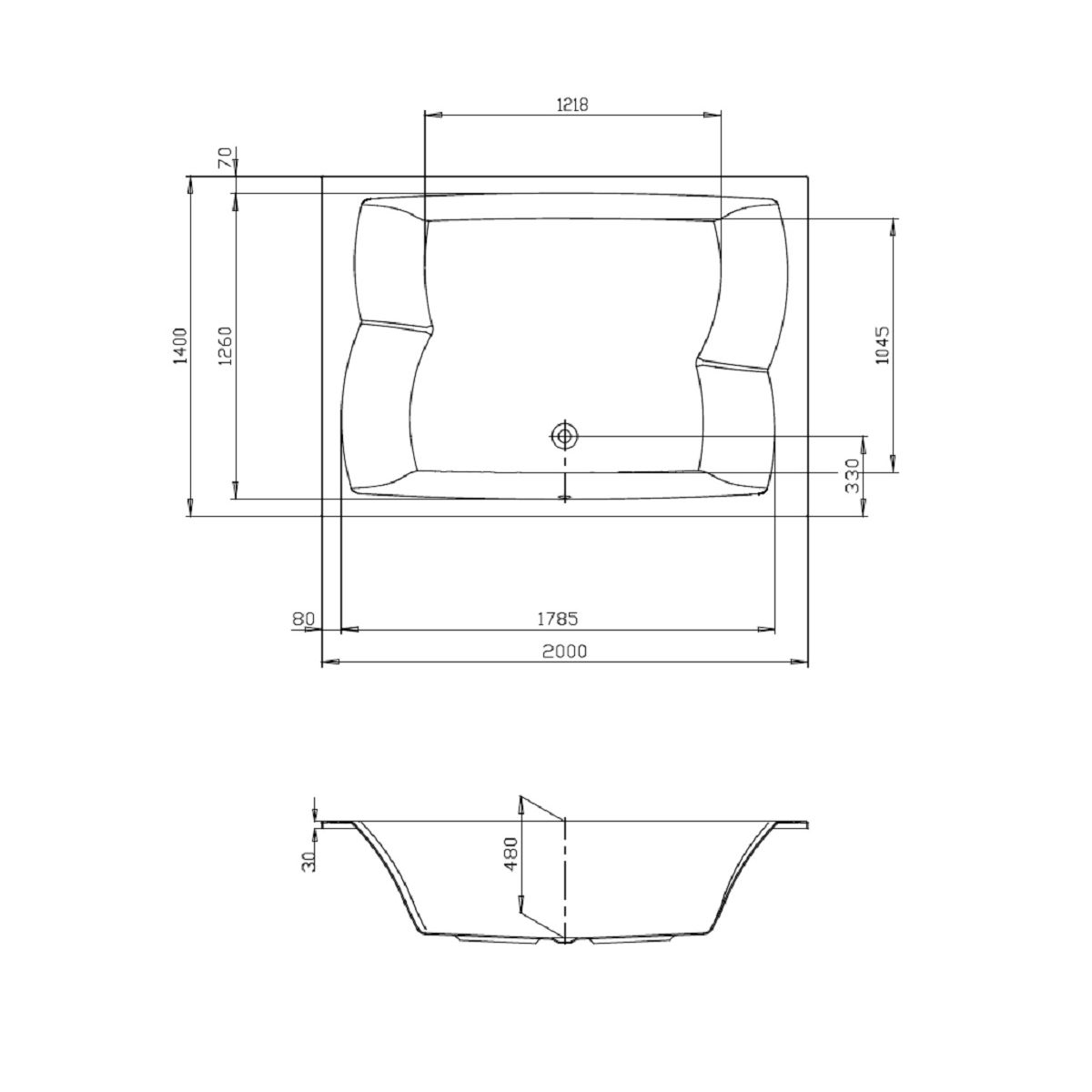 - téglalap alakú kád két személy részére