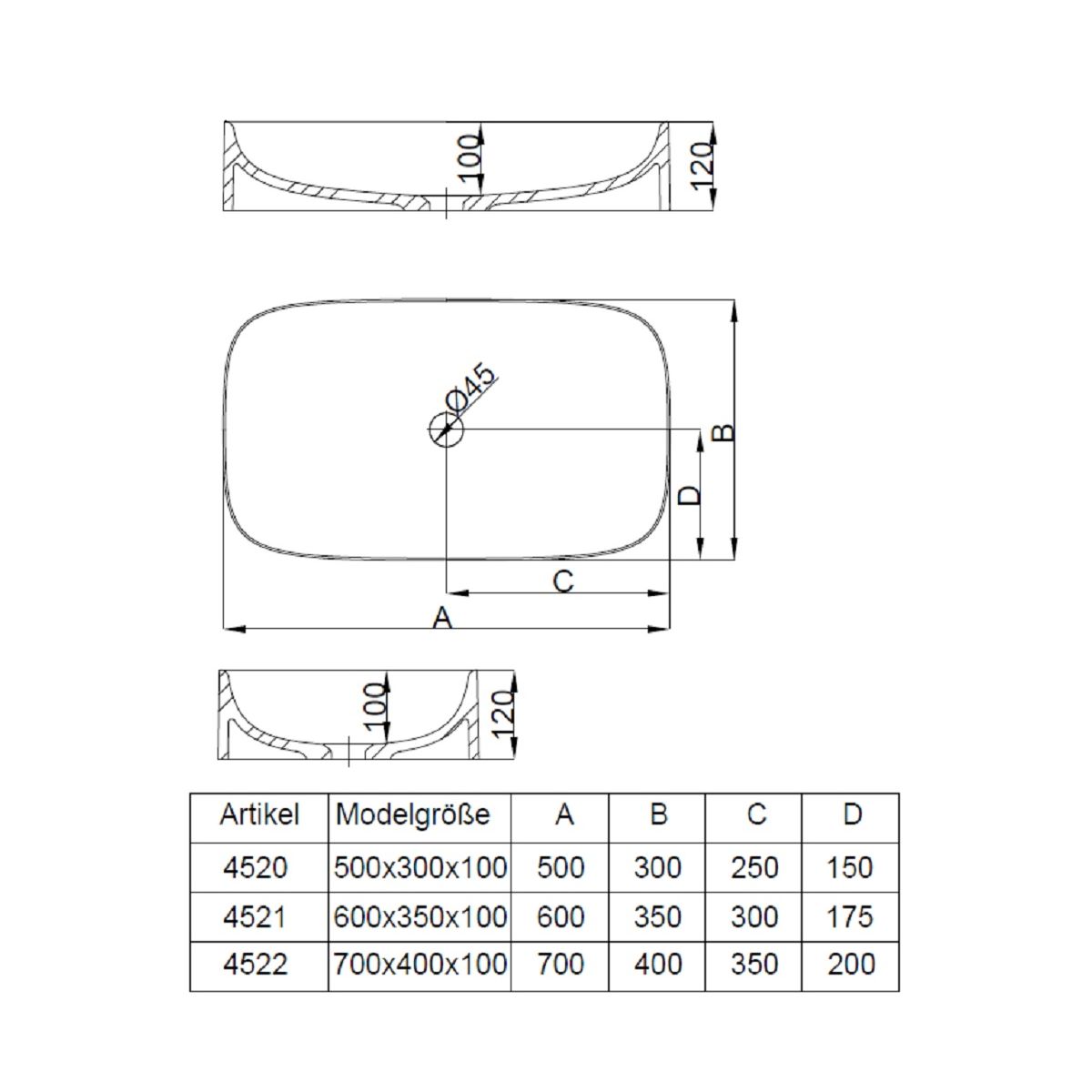 -solique ásványi öntvényből készült pultos mosdókagyló