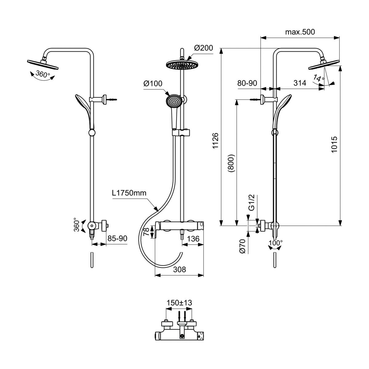 Készlet tartalma: csaptelep zuhany/kád váltóval, fejzuhany, kézi zuhanyfej, zuhany tömlő, zuhanyrúd