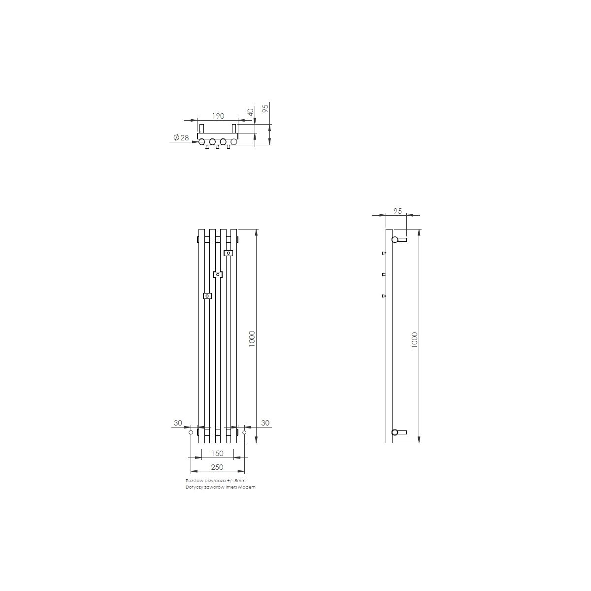 Imers Aries fürdőszoba radiátor dekoratív 100x19 cm króm G00119010003