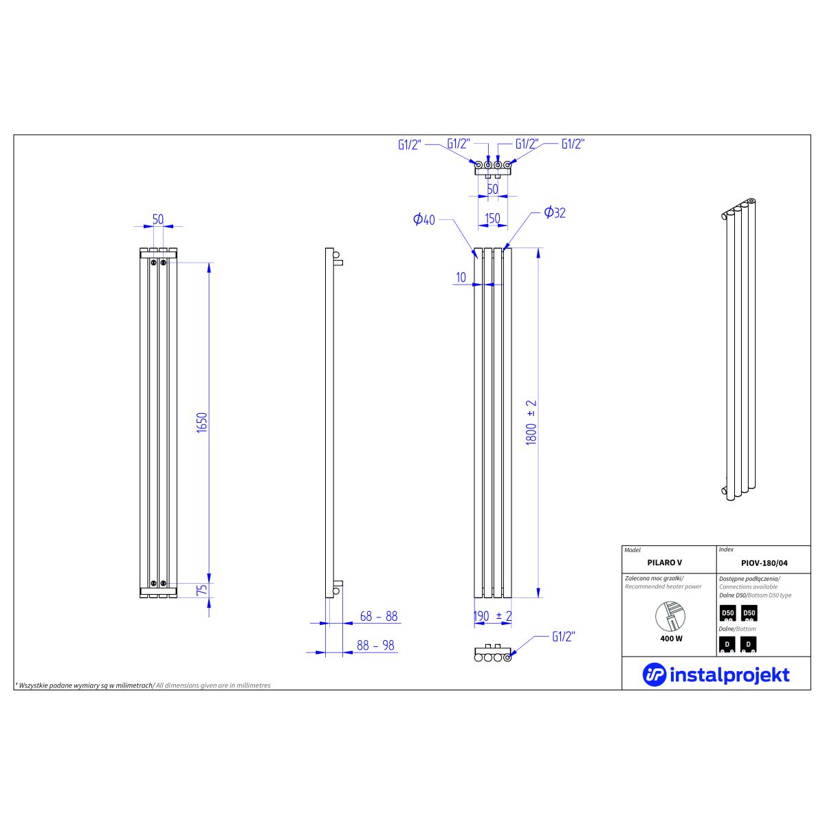 A Pilaro V függőleges dekoratív fűtőtest egy moduláris megoldás, amelyet kifejezetten a házak és tágas lakások szűk tereinek hatékony kihasználására terveztek. Sokoldalúságának köszönhetően ez a modell kiválóan illeszkedik mind az előszobába, mind a fürdőszobába. A konstrukció teljes személyre szabást tesz lehetővé – a felhasználó 1–12 fűtőelemet választhat a három rendelkezésre álló magasság közül, ami akár 14 m² alapterületű helyiségek fűtését is lehetővé teszi. A készülék modern dizájnnal rendelkezik; a hibrid változatban az elektromos fűtőelem (külön kapható) tökéletesen illeszkedik a testhez, sima felületet képezve, látható lépcsők nélkül. Az Instal Projekt színpalettájának széles választéka lehetővé teszi a fűtőtest tökéletes illesztését minden belső stílushoz.