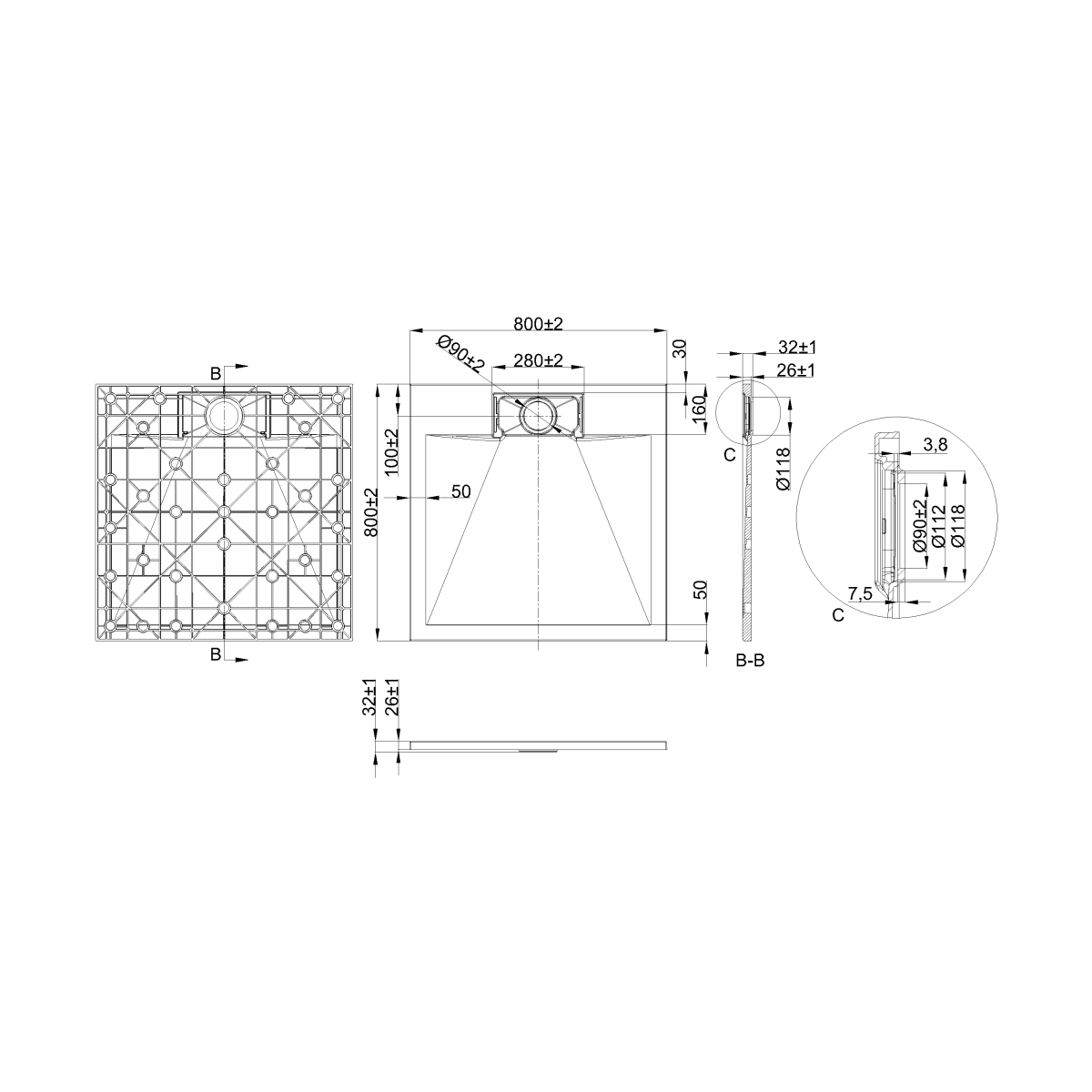 A 80 × 80 cm-es ALVERO zuhanytálca a tömörséget és a modern esztétikát ötvözi. Ultravékony kialakításának köszönhetően (mindössze 2,6 cm magas) tökéletesen illeszkedik a minimalista elrendezéshez. Az SMC kőszerkezetű anyagból készült, így évekig tartós marad - ellenáll a nedvességnek, a karcolásoknak és a mechanikai sérüléseknek. A csúszásmentes felület biztonságot nyújt, a padlóba vagy a padlóra történő beépítés lehetősége pedig a legkisebb helyiségekben is tervezési rugalmasságot biztosít. Az Easy Clean vízzáró szifonnal (SU-AK-701-H) vagy a Slim vízzáró szifonnal kombinálható