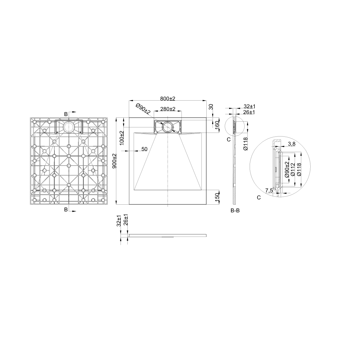 A 80 × 90 cm-es zuhanytálca kissé nagyobb hasznos teret biztosít, miközben megtartja a karcsú, geometrikus formát. Ideális kis és közepes méretű fürdőszobákba. Könnyű, hőre keményedő SMC kompozitból készült konstrukciója garantálja a könnyű összeszerelést és szállítást. A csúszásmentes kőfelület biztonságos és kellemes zuhanyozást tesz lehetővé. A méretre vágási lehetőségnek köszönhetően a zuhanytálca bármilyen fülkébe illeszthető. Az Easy Clean víznyelővel (SU-AK-701) vagy a Slim víznyelővel (SU-AK-702) kombinálható.