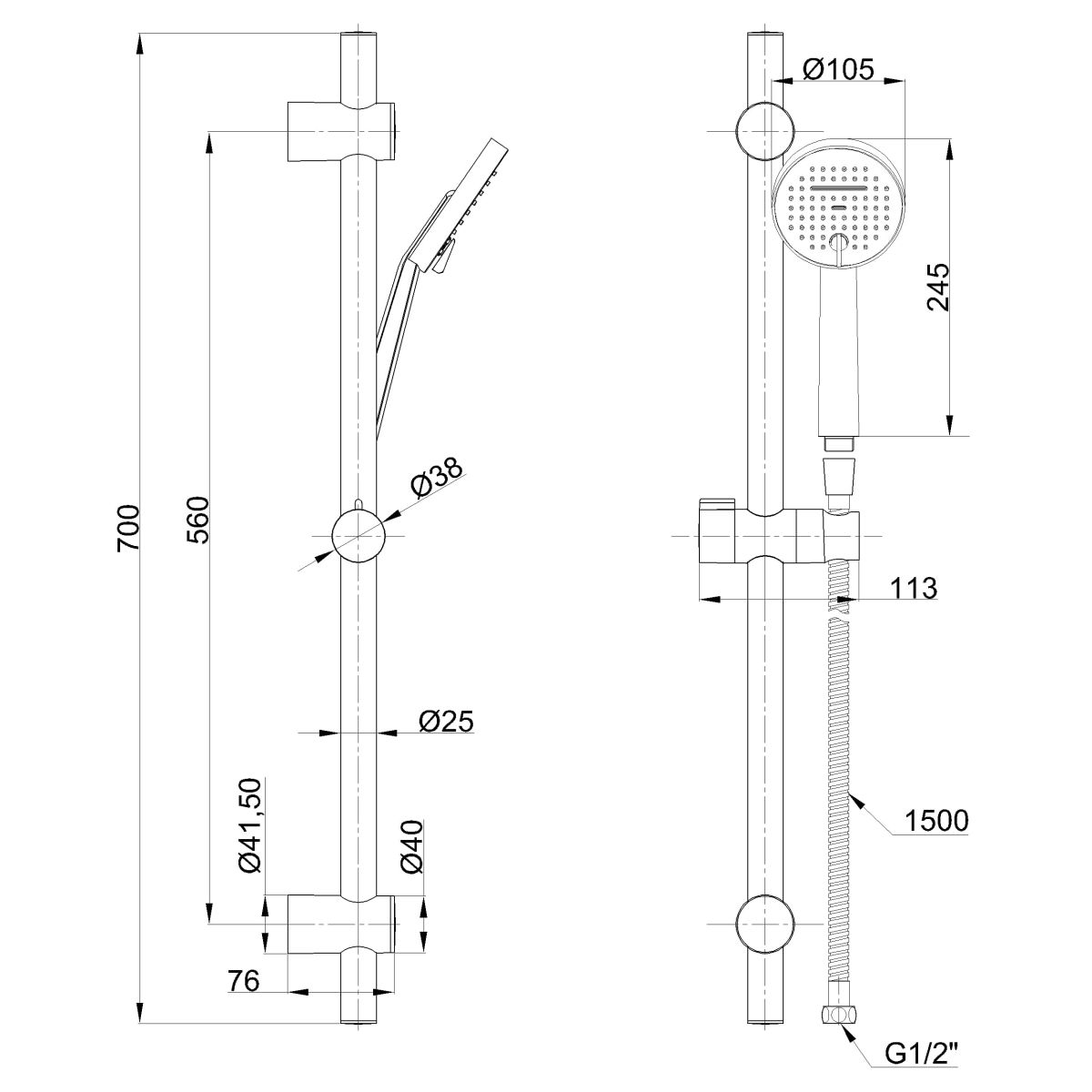 - Készlet tartalma: kézi zuhanyfej, zuhany tömlő, zuhanyrúd