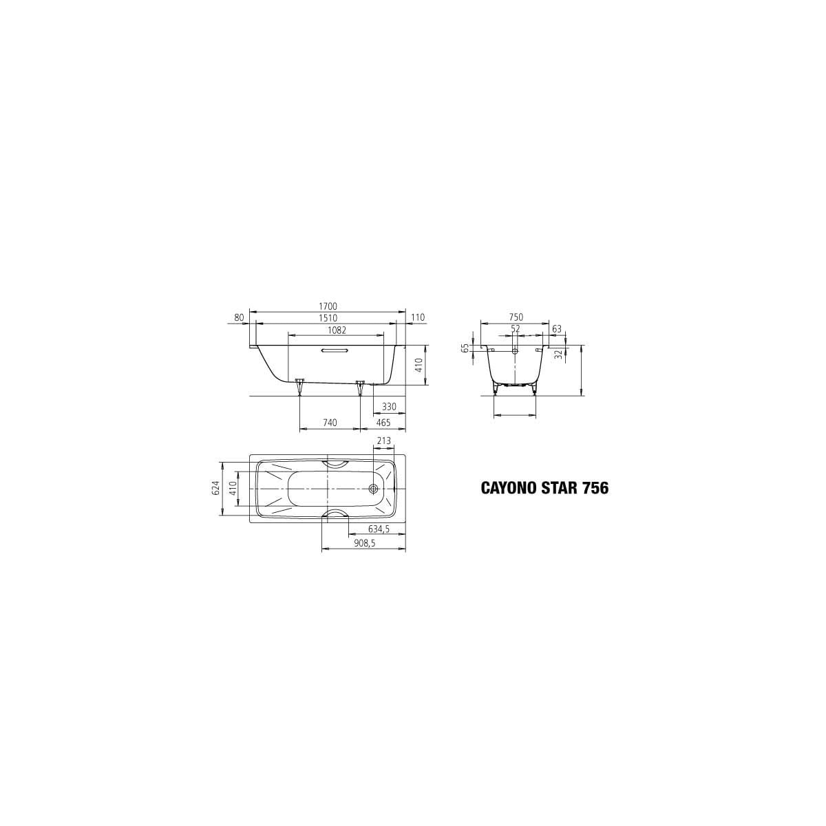 Kaldewei Cayono Star egyenes kád 170x75 cm fehér 275600013001