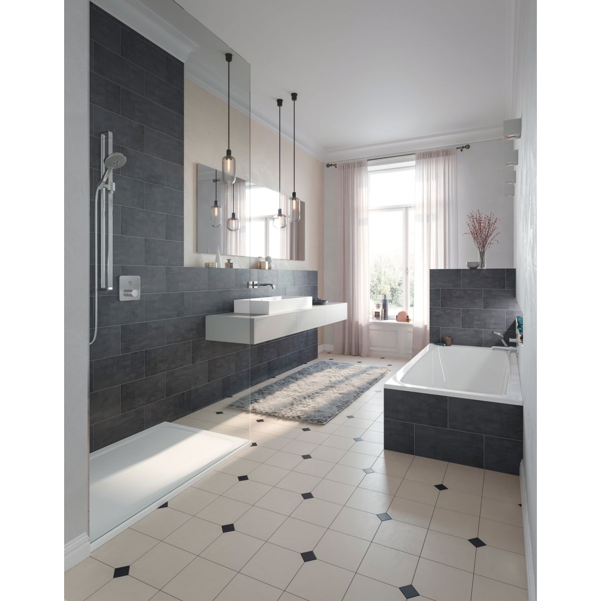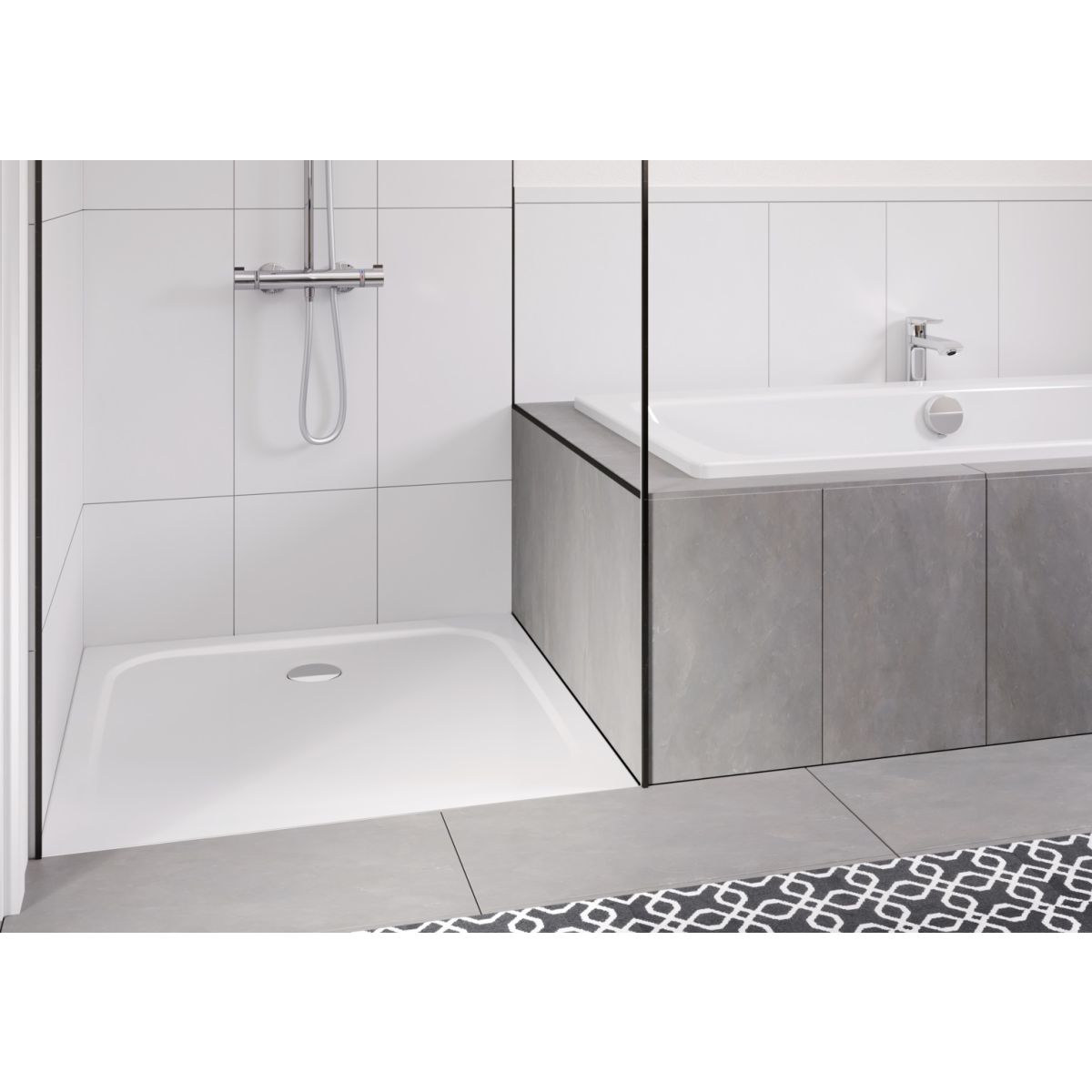 Klasszikus kialakítású lapos zuhanytálca, a rövidebb oldal közepén található lefolyóval. Tágas, homogén állófelület. Tökéletesen összehangolva a Cayono család termékeivel.