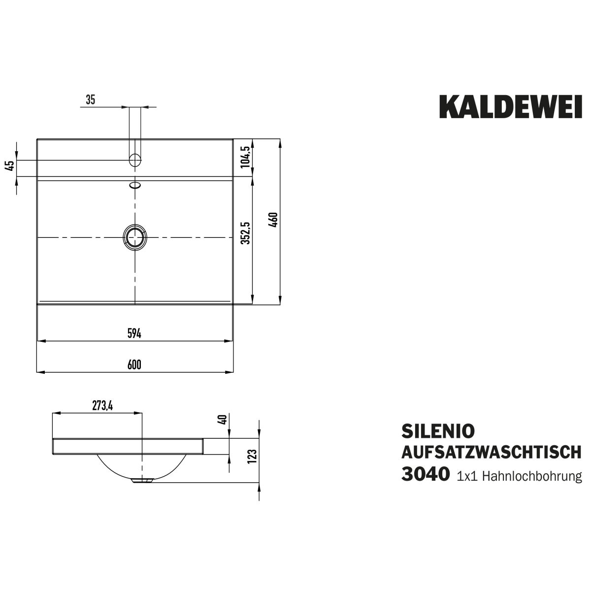 Kaldewei Silenio mosdótál 60x46 cm négyszögletes mosdótálak fehér 903906303001