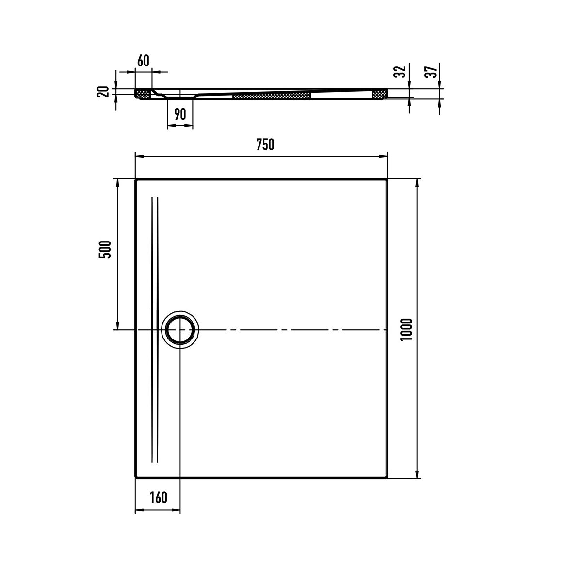 Lapos zuhanytálca nagyon modern kialakításban, a lefolyó a hosszú oldal közepén helyezkedik el. Tágas, homogén állófelület. Kombinálható krómozott lefolyófedéllel vagy a zuhanytálca színének megfelelő színű zománcozott lefolyófedéllel (külön megvásárolható). Zuhanytálca komplett, leeresztett polisztirol hordozóval. Ha a padlóban nincs elég hely, ideális peremes kabinokhoz is.