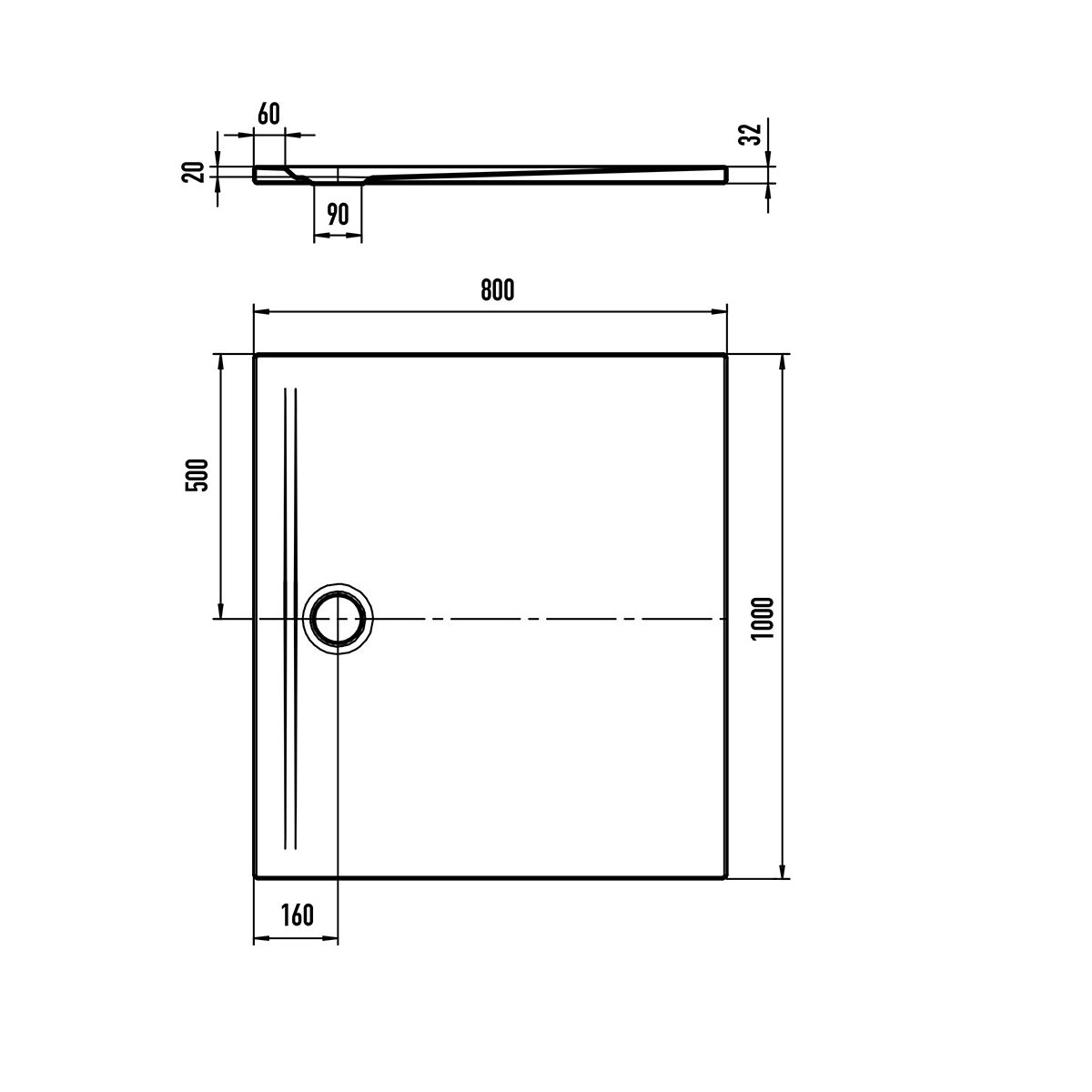 Kaldewei Superplan Zero téglalap alakú zuhanytálca 100x80 cm fehér 353000010001