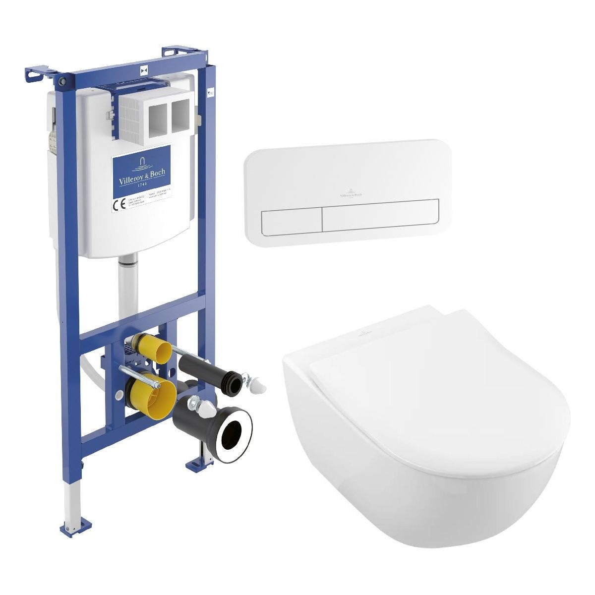 Villeroy & Boch Subway 2.0 Combi-Pack öblítésmentes CeramicPlus fali WC-kagyló Weiss Alpin szabadon álló ülőkével 5614R2R1