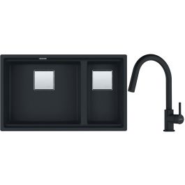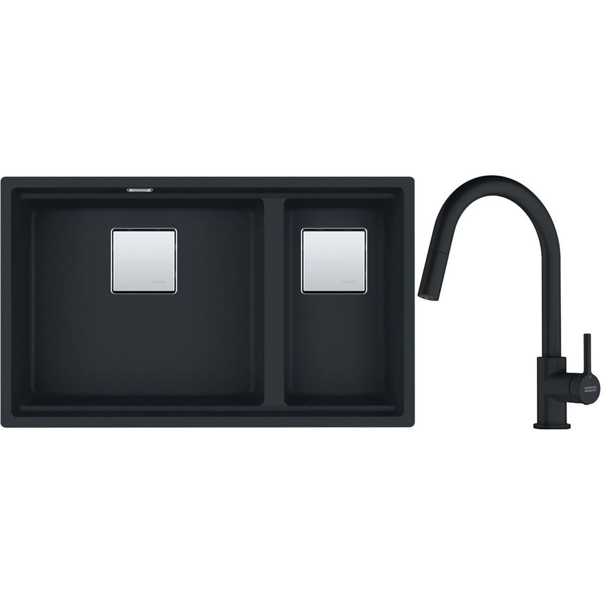 Franke Lina Pull-Out - álló konyhai keverő kihúzható kifolyóval, fekete matt színben (115.0626.053 modell) - a modern designt praktikus megoldásokkal ötvözi. Stílusos matt fekete kivitelével elegáns, jellegzetes hangsúlyt visz a konyhába, és tökéletesen illeszkedik a legkülönbözőbb lakberendezési stílusokhoz.