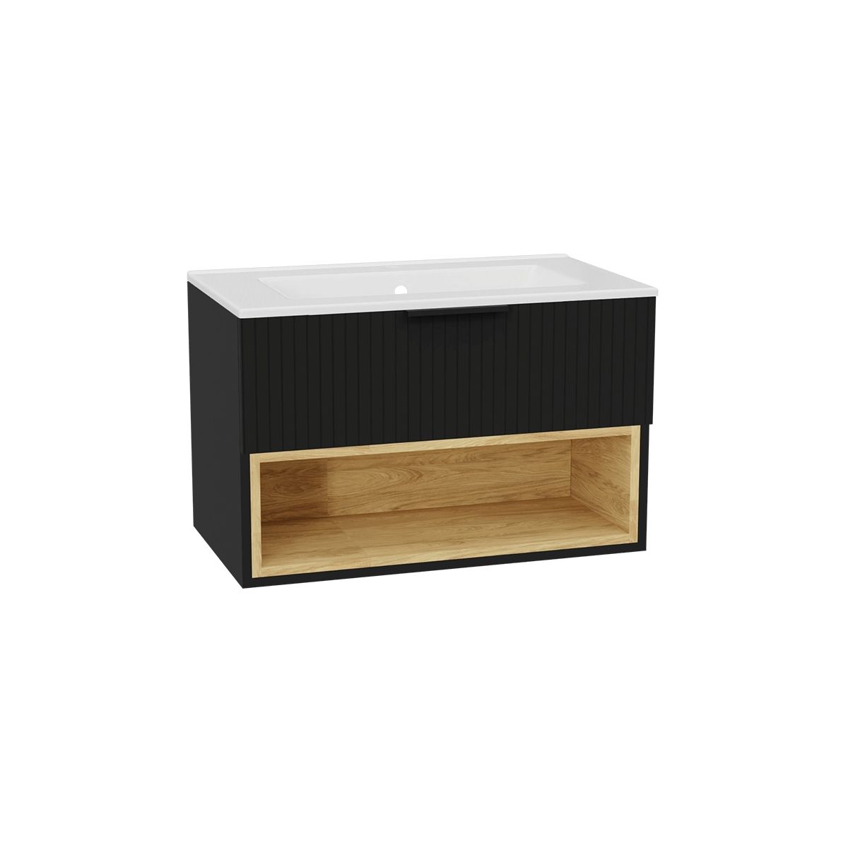 Tuto 2.0 80 cm-es szekrényegység, 1 fiókos, fekete matt/tölgy.