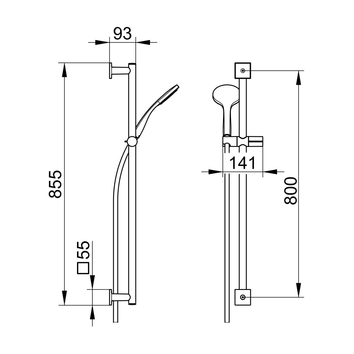 - 85,5 cm-es sín, dekoratív korong (négyzet alakú) zuhanyfej tartóval,