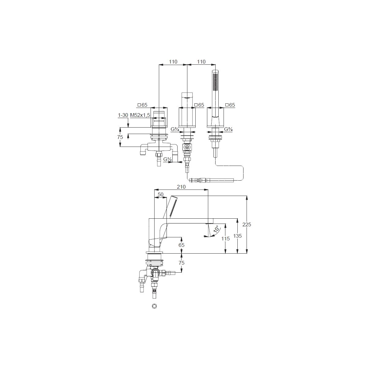 - háromlyukú álló szerelés