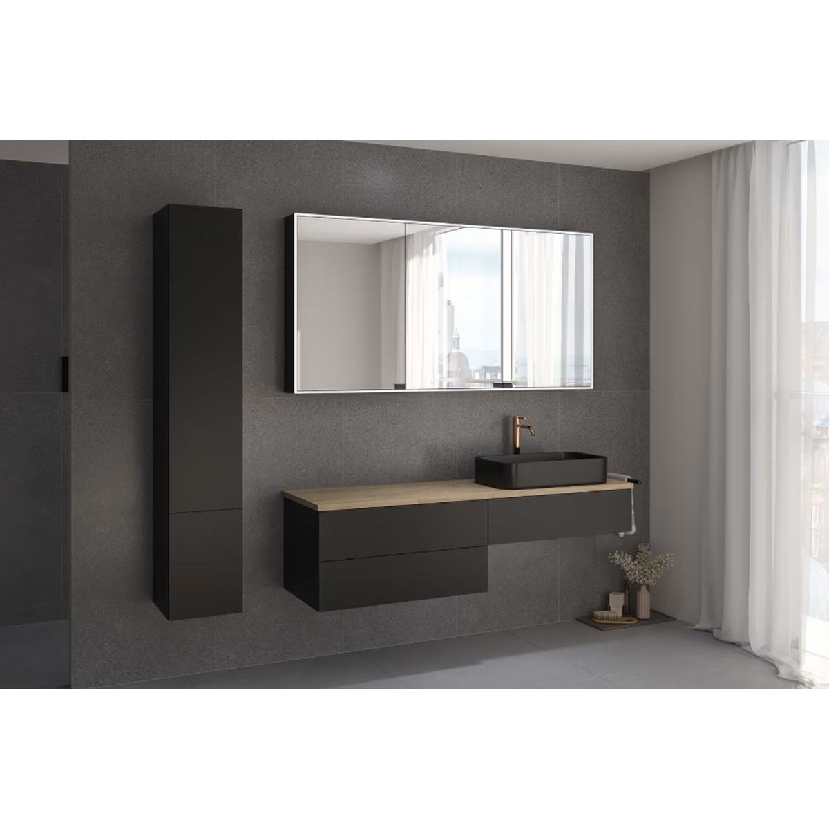 Kronenbach Cube szekrény pulttal 161x48.7x44.5 cm mosdókagyló alá akasztható fekete-tölgy KBWTKOWTL1613SMGH