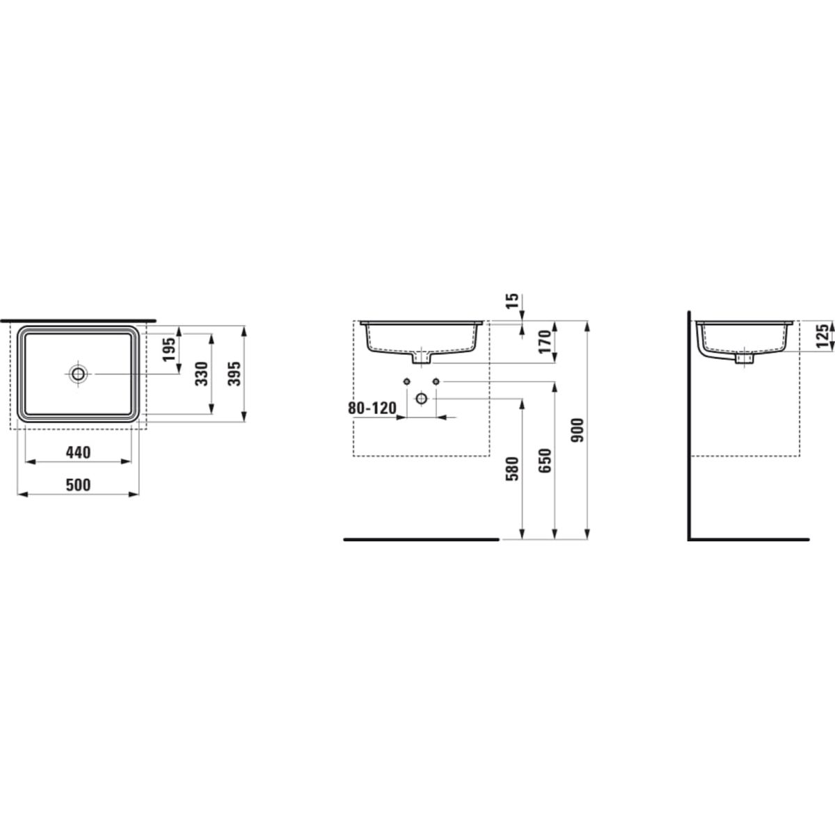 Laufen Savoy mosdótál 44x33 cm négyszögletes alulról beépíthető fekete H8189487161551