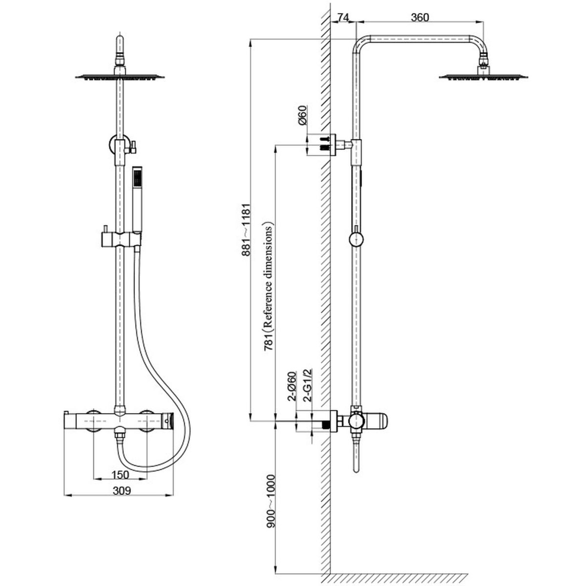 Készlet tartalma: csaptelep zuhany/kád váltóval, fejzuhany, kézi zuhanyfej, zuhany tömlő, zuhanyrúd, zuhanytartó