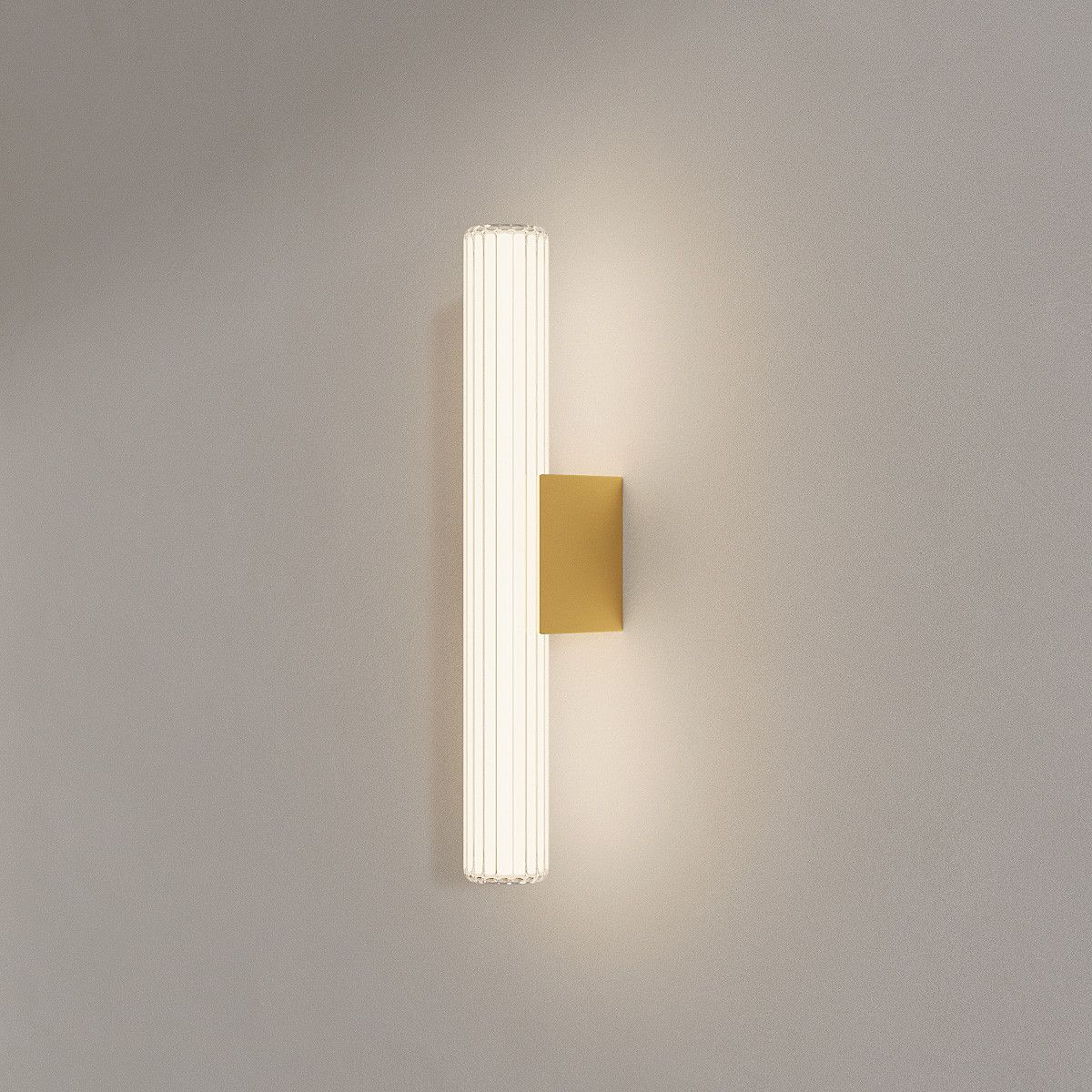 A Linea kollekció fali lámpája a modern design és a funkcionalitás harmonikus kombinációja. Az átlátszó üvegből készült, egyedi, cső alakú lámpaernyőt függőleges vonalakból álló finom minta díszíti. Az innovatív kialakítás integrált LED CCT világítást tartalmaz, amely lehetővé teszi, hogy kiválaszthassa a kívánt fényszínt - a melegtől a semlegesen át a hidegig. A fali lámpa fém aljzatra van szerelve. A Linea fali lámpa egyszerű, mégis stílusos kialakításával tökéletesen illik a modern belső terekbe, lakó- és kereskedelmi célokra egyaránt, eleganciát és finom ragyogást kölcsönözve.