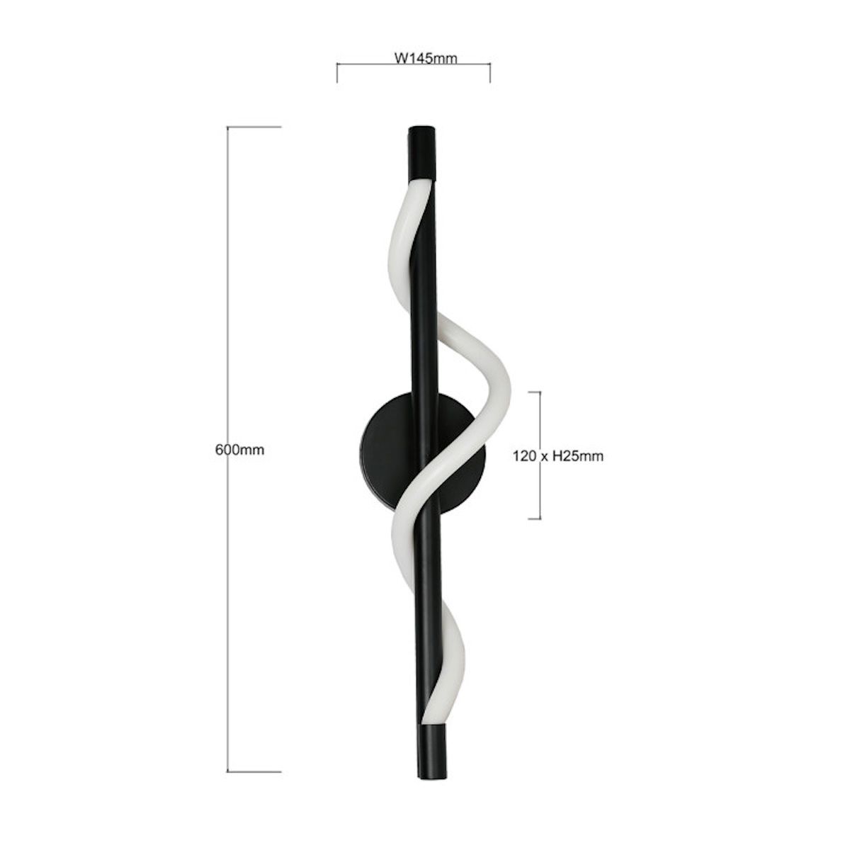 Méretek: A fali lámpa 60 cm magas és 14,5 cm széles. A talp átmérője 12 cm, szélessége pedig 2,5 cm.