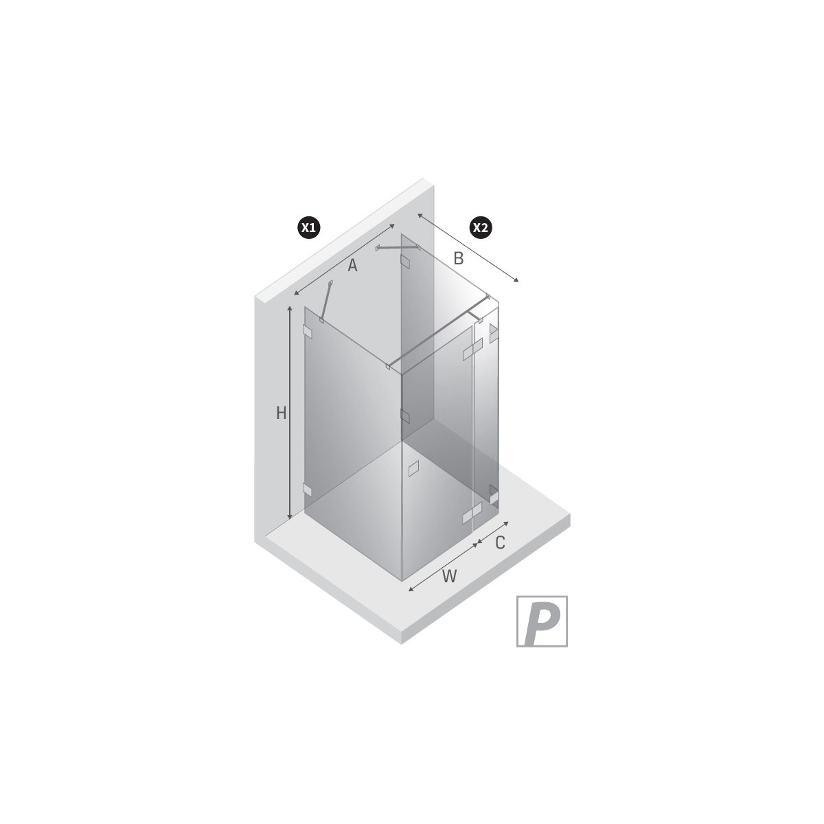 - szélesség (X1) a fülke üvegének középvonaláig: 96,4 cm