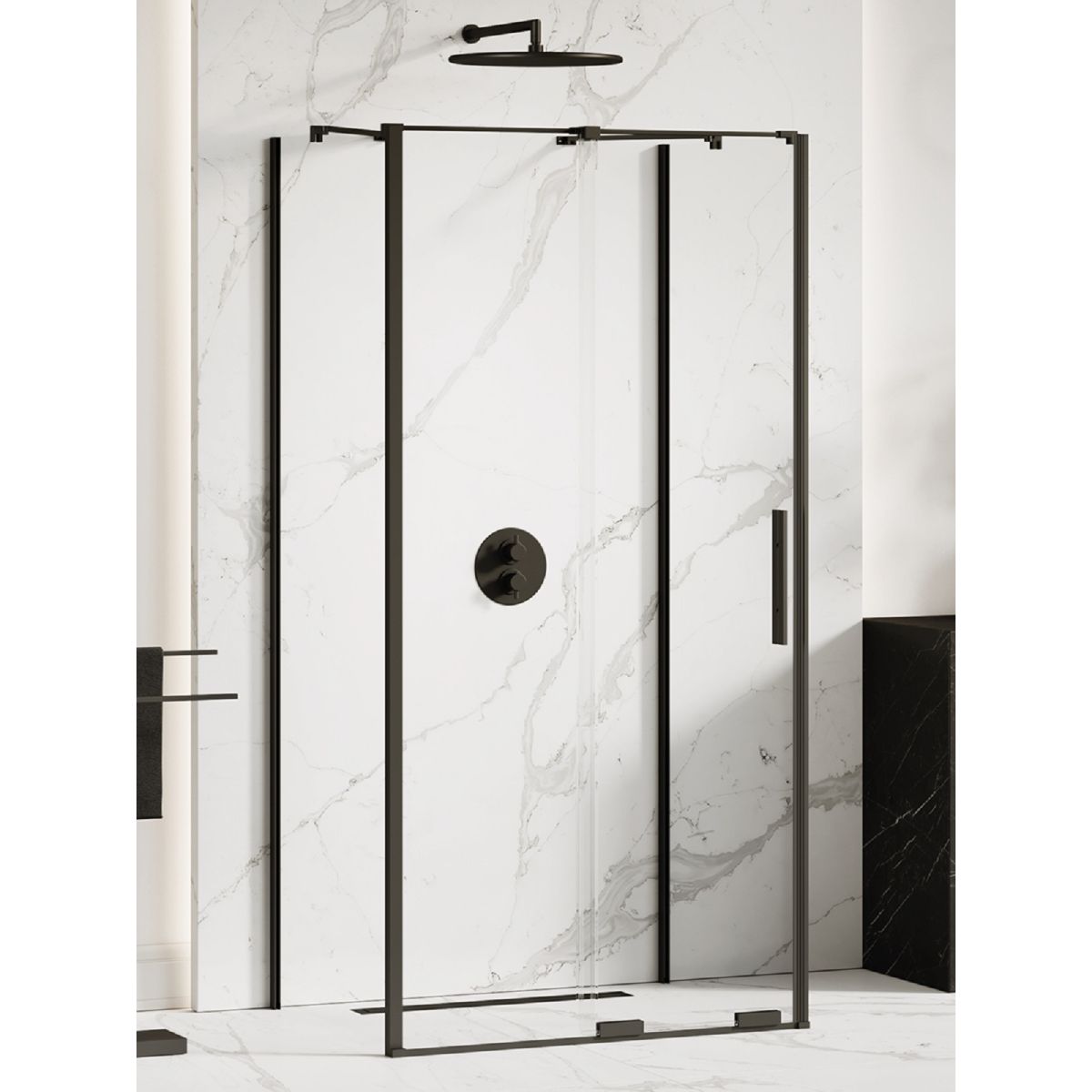 A Smart Black modell elegáns fekete részleteket tartalmaz matt kivitelben. A zuhanykabinok 8 mm vastag, edzett biztonsági üveggel rendelkeznek, Active Shield 2.0 védőbevonattal. A kollekció termékei csak alul csúszó rendszerrel rendelkeznek, felül pontszerű vezetéssel. Az intelligens kabinok zuhanytálcával vagy anélkül is felszerelhetők.