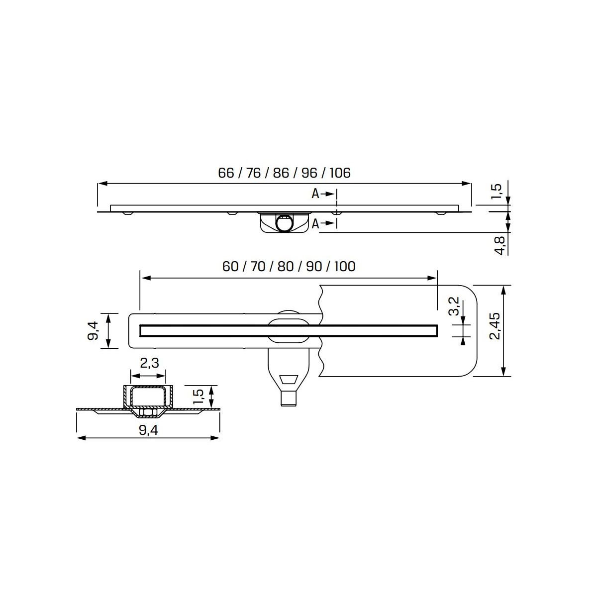 New Trendy Visio Slim Gunmetal Brushed lineáris lefolyó 80 cm OL-0093