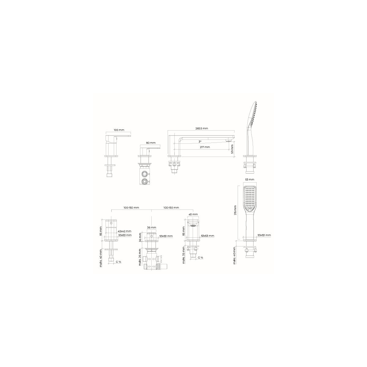 Oltens Hadsel kád és zuhany csaptelep fürdőkád fölé grafit 34203400