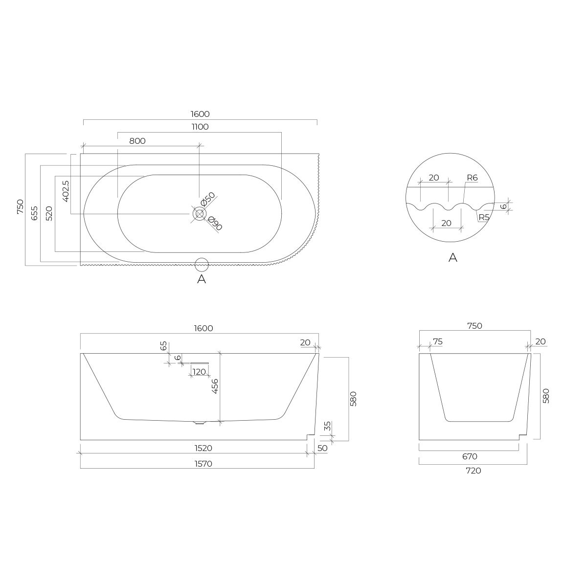 A kádak strapabíró akrilból készülnek, és beépített túlfolyóval és lefolyóval is rendelkeznek a kellemetlen szagok kiküszöbölése érdekében.
