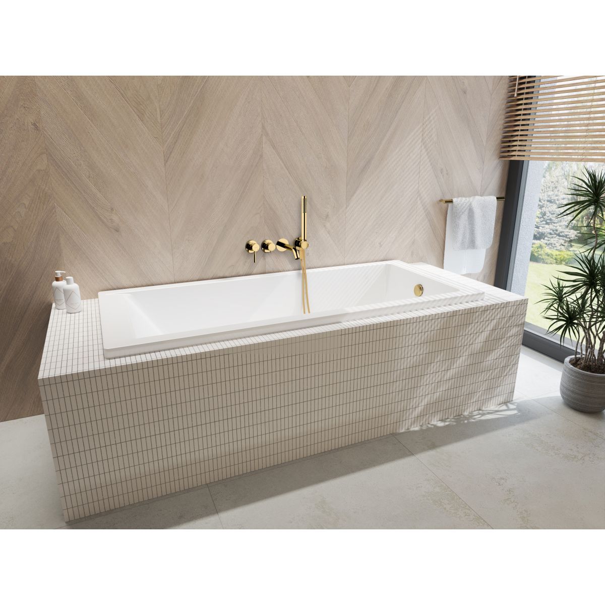 A fürdőkádat a csempézésre szánják. A gyártó nem dedikálja a kész burkolatot.