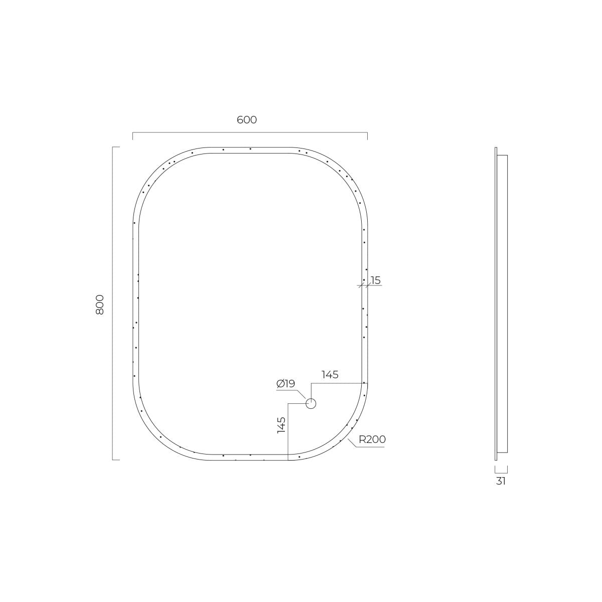- megvilágítás 1,5 cm széles csík formájában a tükör elülső oldalán