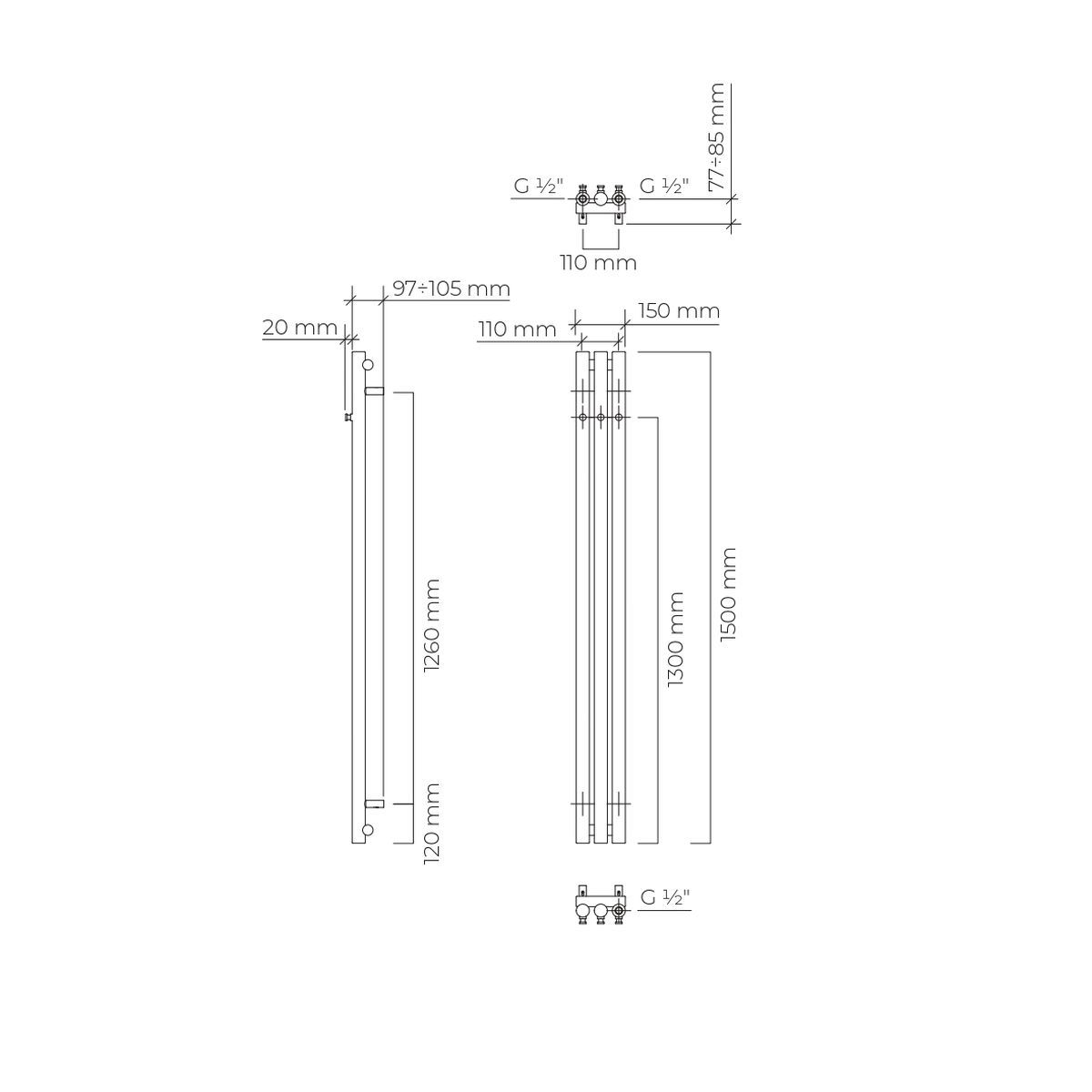 Oltens Stang fürdőszoba radiátor dekoratív 150x15 cm fekete 55019300