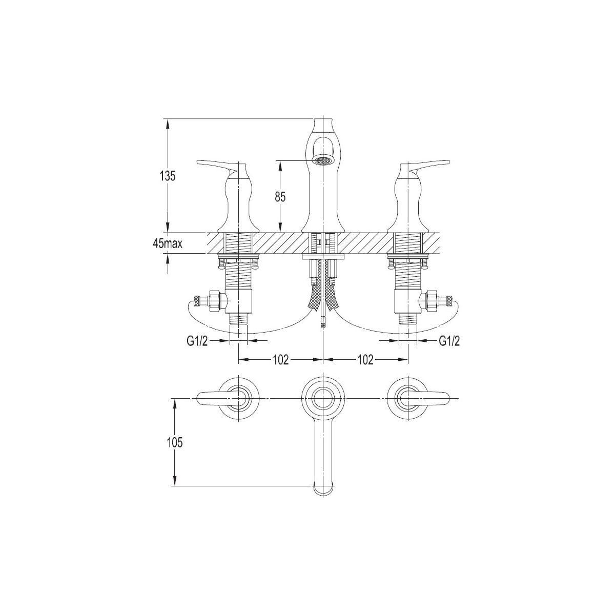 Omnires Art Deco mosdócsaptelep álló króm AD5114CR