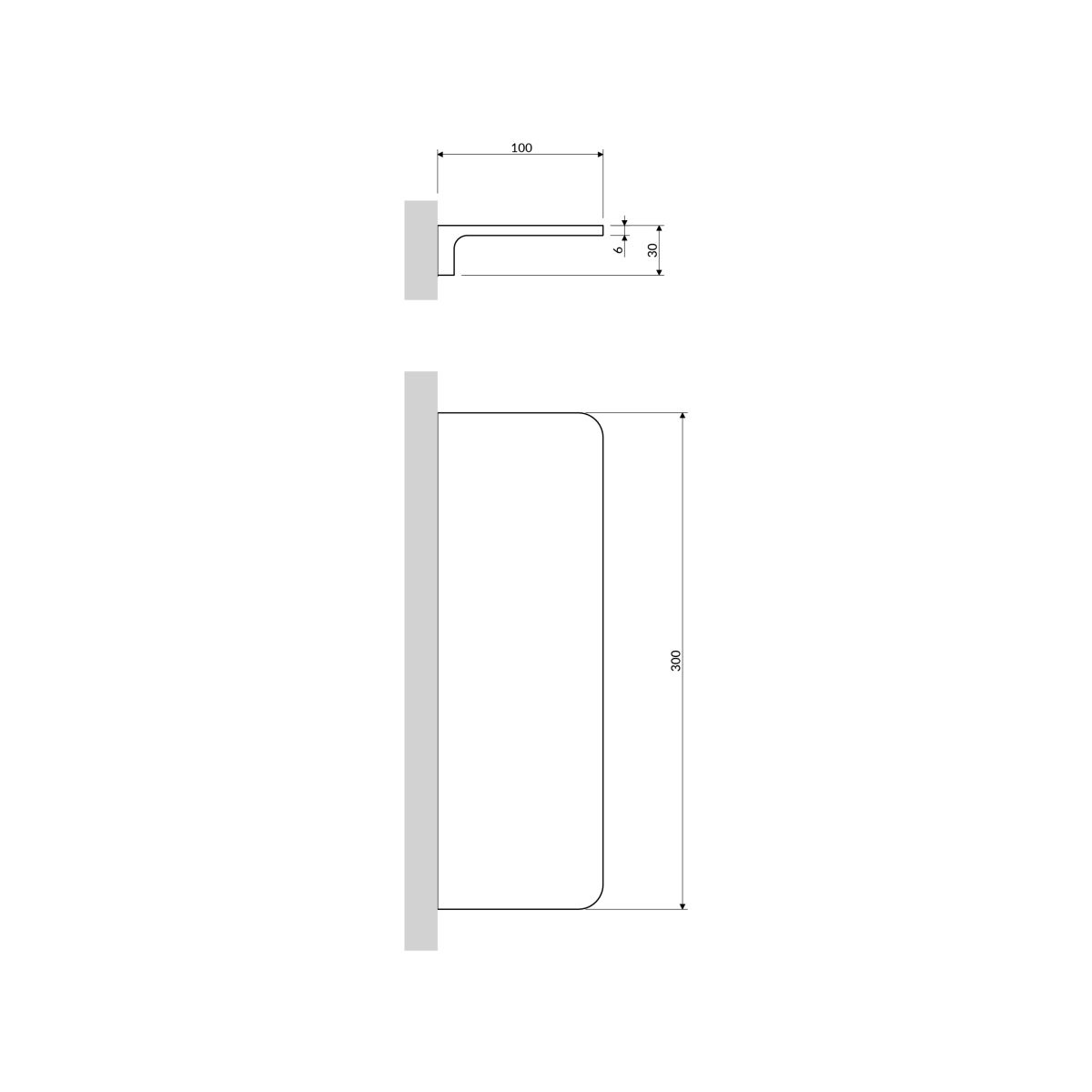 - szélesség: 30 cm, magasság: 3 cm, távolság a faltól: 10 cm
