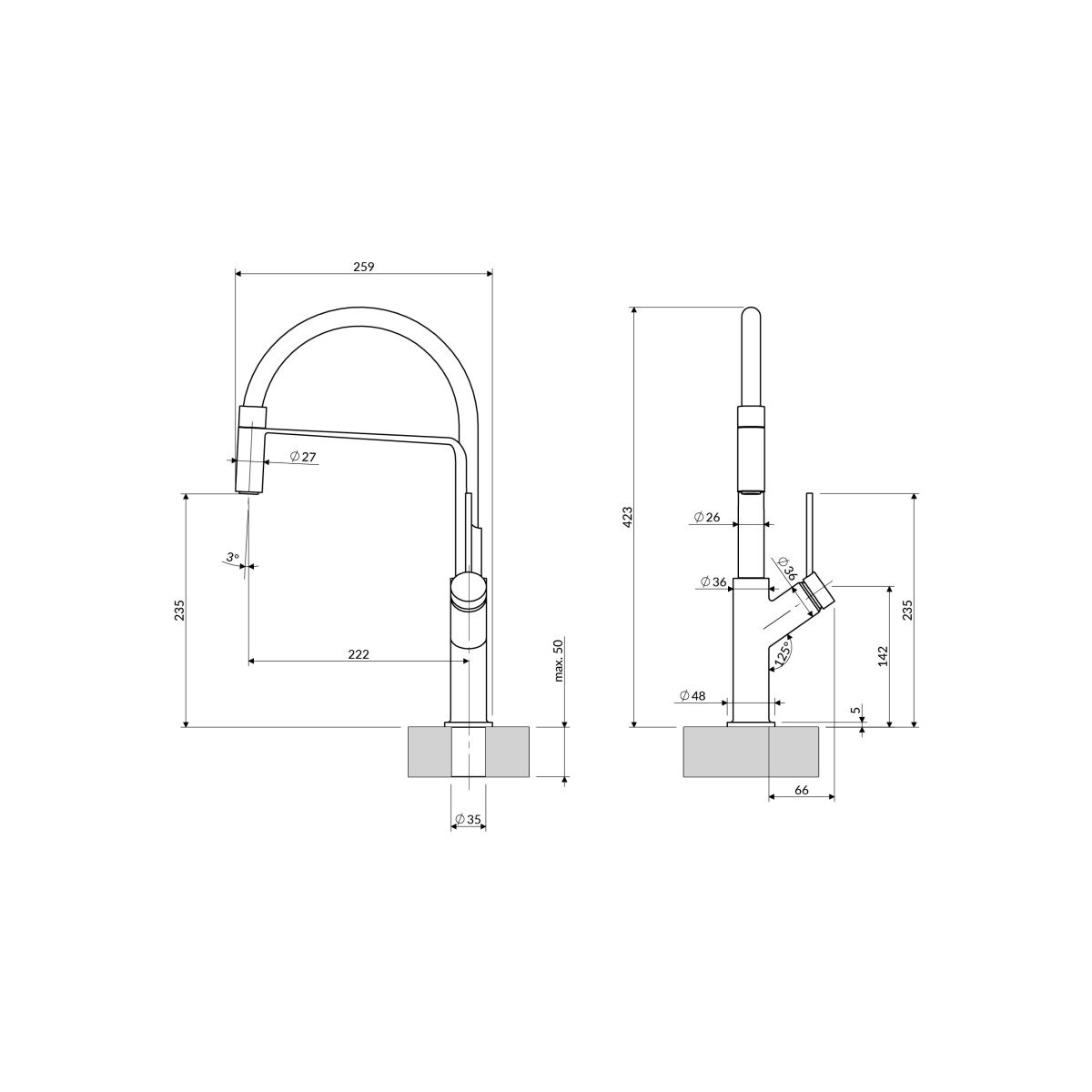 - a víz kifolyásának magassága: 23,5 cm
