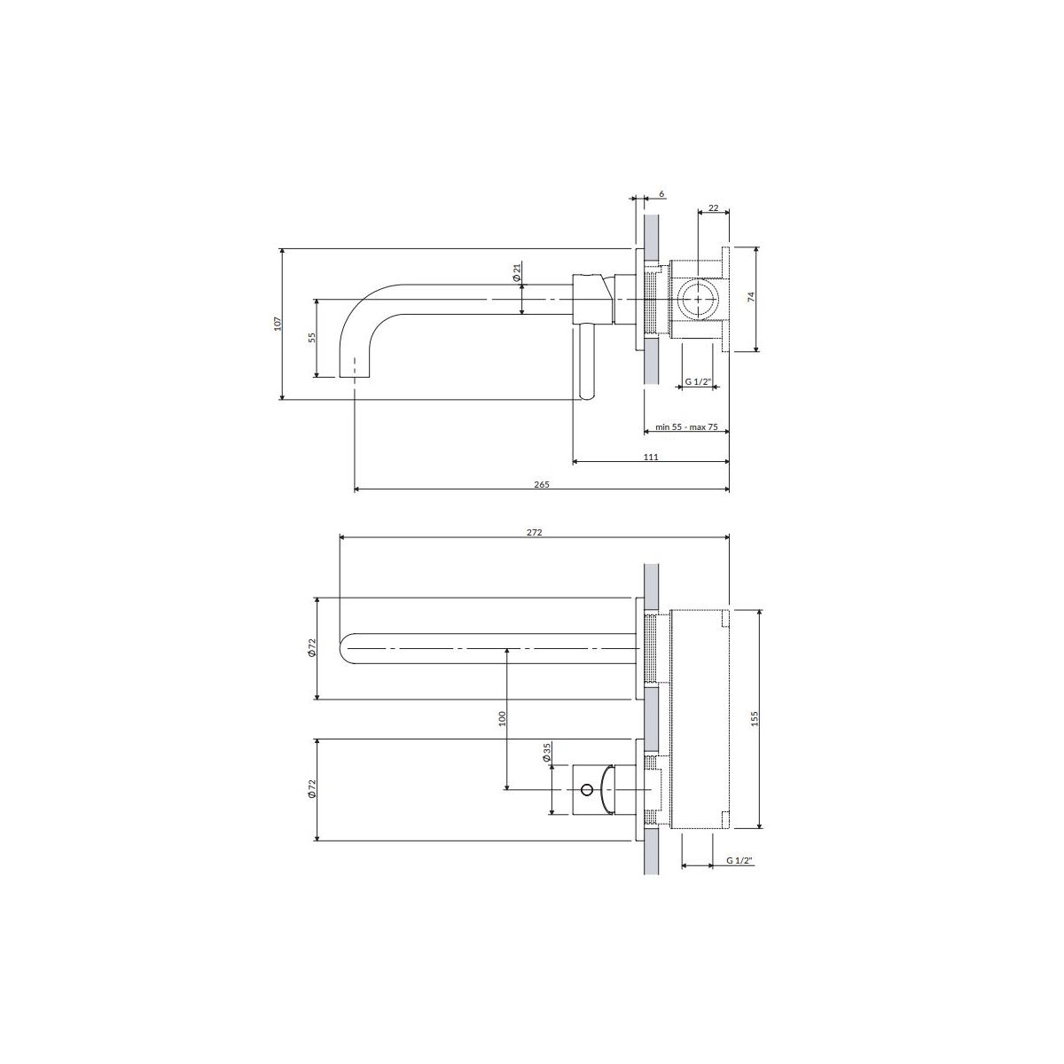 - kifolyócső elérhetősége a csempe felületétől: 19-21,5 cm (a keverő falba való beépítésének mélységétől függ)
