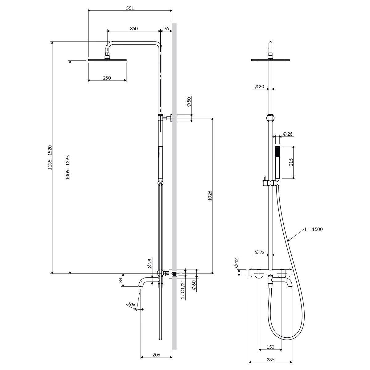 Y | felületre szerelhető termosztatikus fürdőszobai rendszer