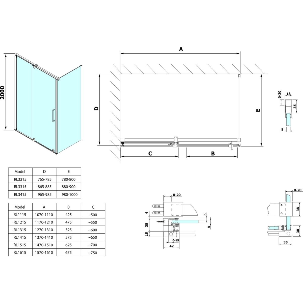 - Változat: zuhanyajtókhoz
