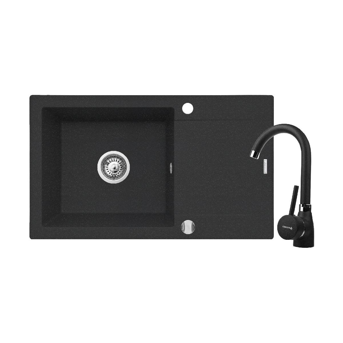 Pyramis KORFU mosogatószett (78x46) 1B 1D fekete + BELLO keverőcsap szett