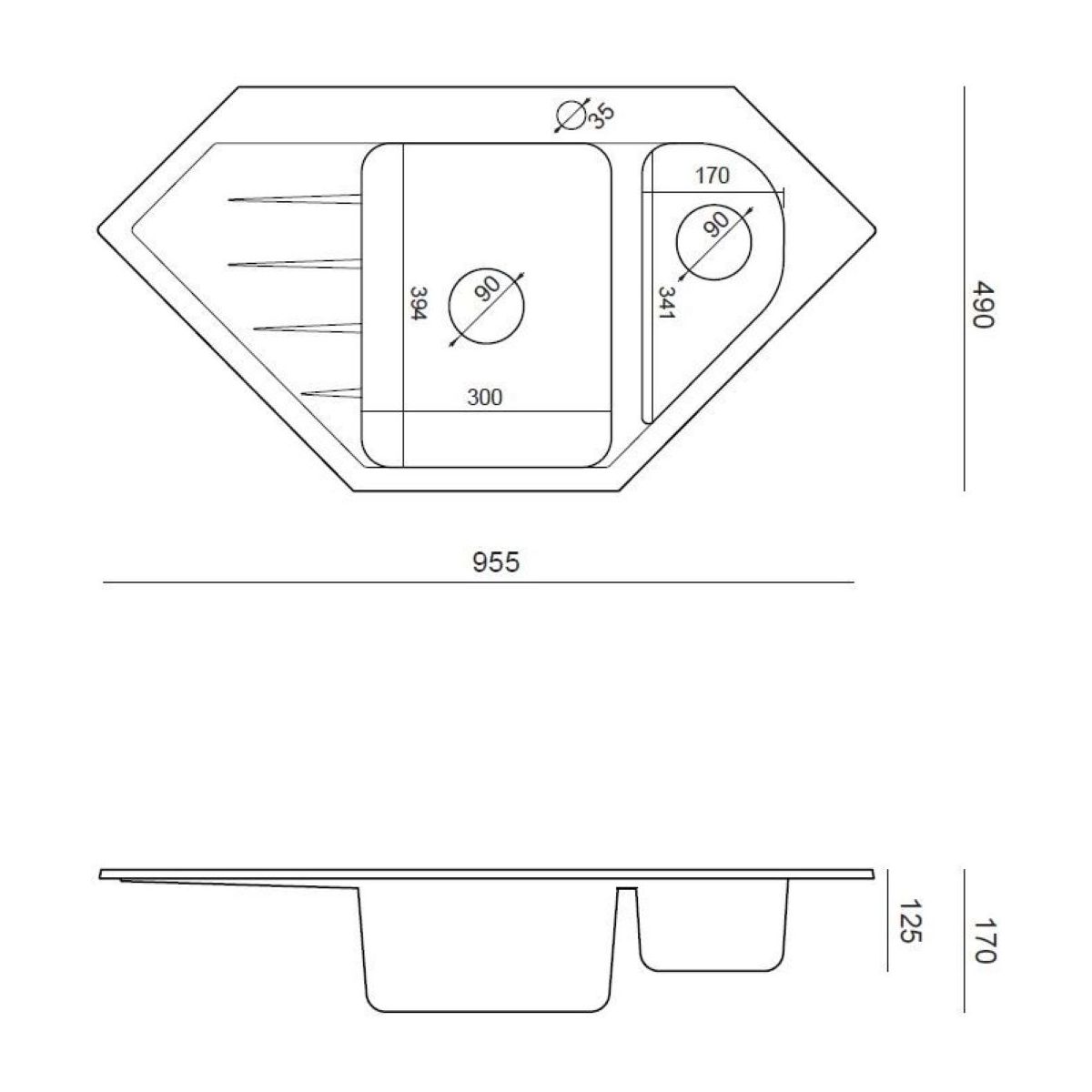 A RICK 356 mosogató 1,5 tálcás modell, amelyet sarokszekrényekbe való beépítésre terveztek, de normál, egyenes konyhai huzatba is beépíthető. Lefolyóval rendelkezik, amely a mosogatott edények szárítására használható anélkül, hogy helyet veszítene a munkalapon.