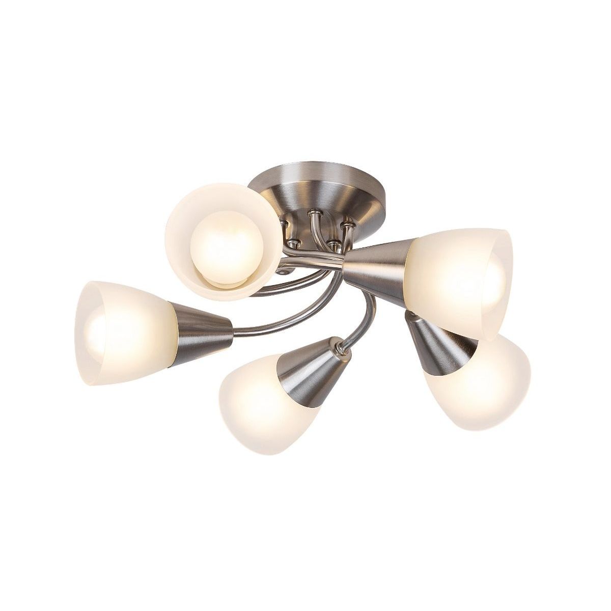 A Connor mennyezeti lámpa hagyományos stílust képvisel. Felszerelheti nappalijába vagy hálószobájába; a különböző irányokba mutató öt árnyékolóval kifogástalan megvilágítást biztosít a helyiségnek. A szaténkrómozott fém lámpatestet opálüvegből készült árnyékolók egészítik ki.