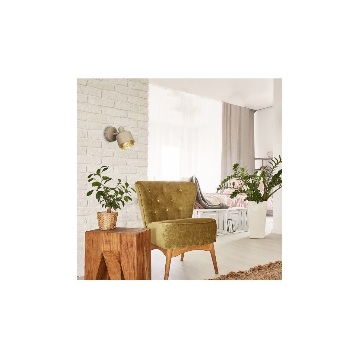 A Fedora reflektor kortárs stílusban nagyszerű kiegészítője lesz nappalijának vagy hálószobájának. Ez a teljesen fémből készült, világosbarna és arany színű fali lámpa kerek, dekoratív talppal van a falhoz rögzítve. Különlegessége a perforált, hengeres, aranyszínű belső árnyékoló, amely túlnyúlik a világosbarna külső árnyékolón.