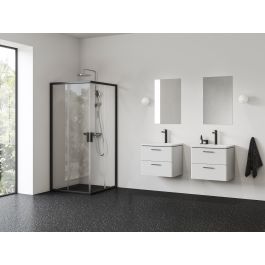 Blix II négyrészes sarokzuhanykabin fekete kivitelben, Ravak AntiCalc® védőbevonattal ellátott átlátszó üvegbetéttel. Csúsztatható nyitórendszer.