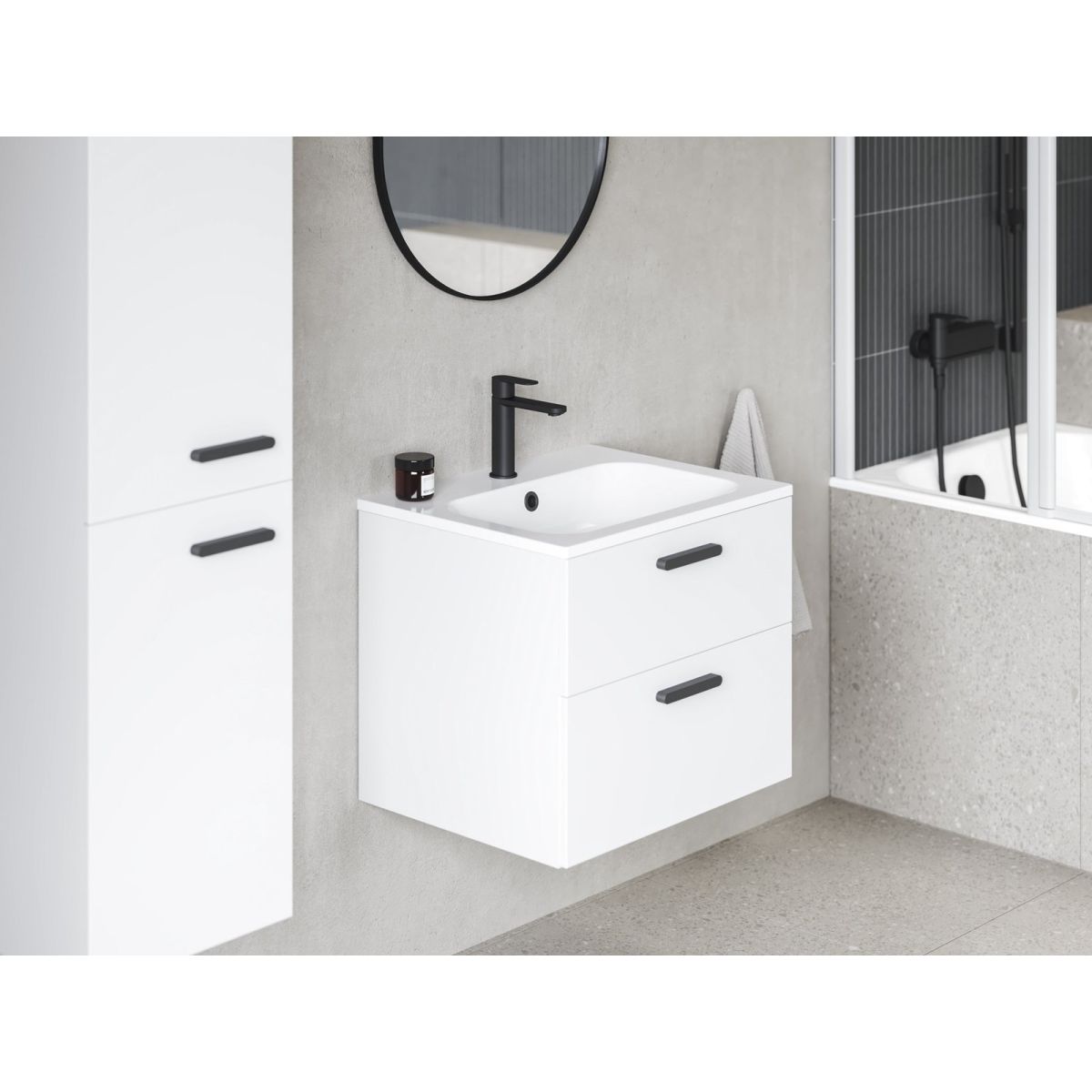 Mosdószekrény SD Chrome II fehér kivitelben. Fekete színű fogantyúk.