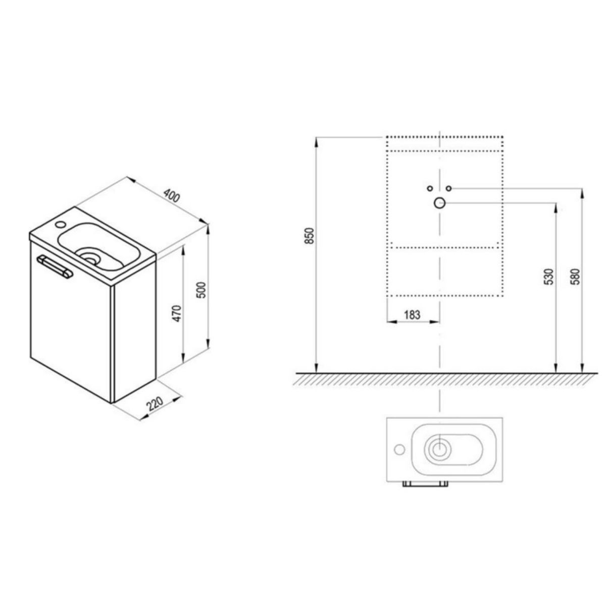 Ajtó az SD Chrome II szekrénytesthez, Chrome 40 mosdókagyló alá, fehér kivitelben. Bal oldali változat.