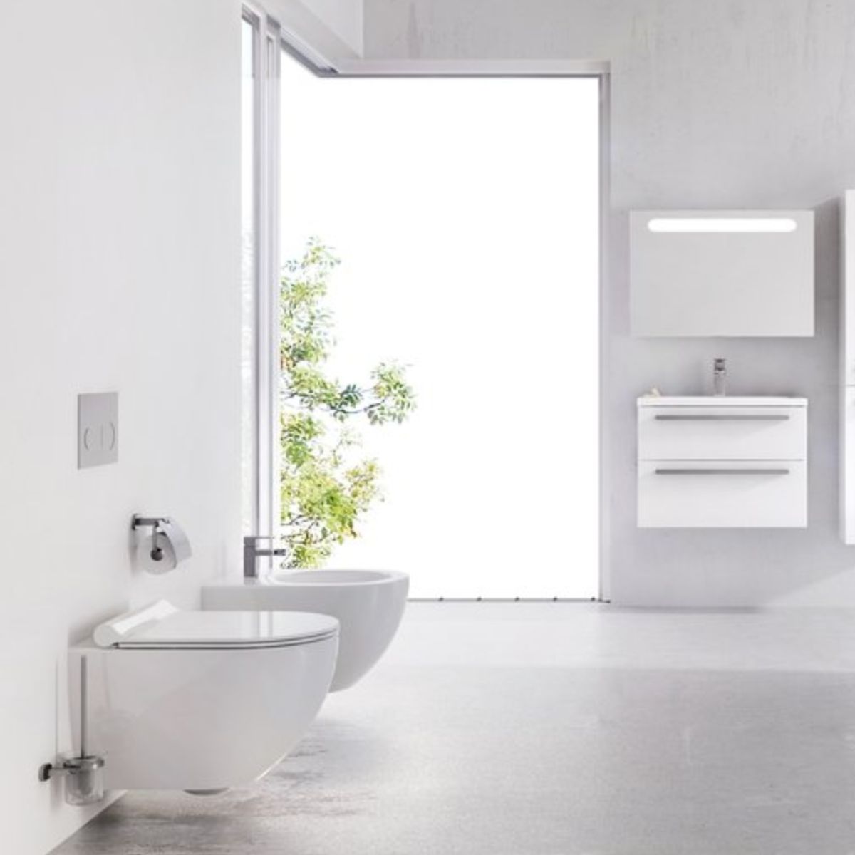 A WC-csészéhez egy rejtett szerelőkeret, egy öblítőgomb és egy SoftClose lassítórendszerrel felszerelt WC-ülőke - az Uni Chrome WC-ülőke vagy az extra vékony Uni Chrome slim WC-ülőke - beszerzését javasoljuk.