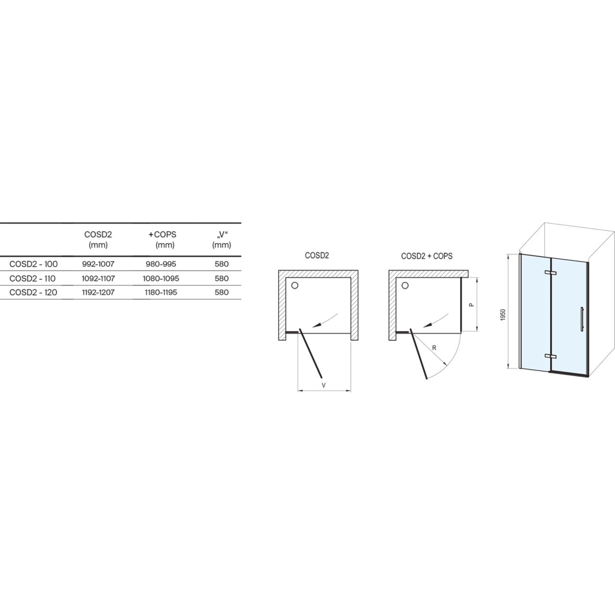 - az ajtó a COPS fix fallal (80,90,100) kombinálható zuhanykabin kialakításához, a fal külön megvásárolható!