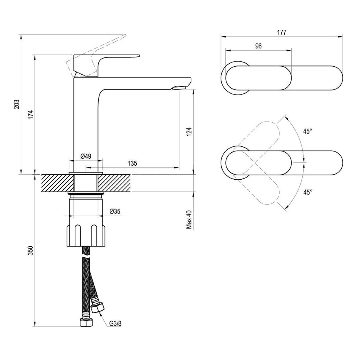 Eleganta álló mosdócsap, pop-up leeresztő nélkül. Matt fekete kivitel. Beépített szellőző EcoFlow funkcióval.