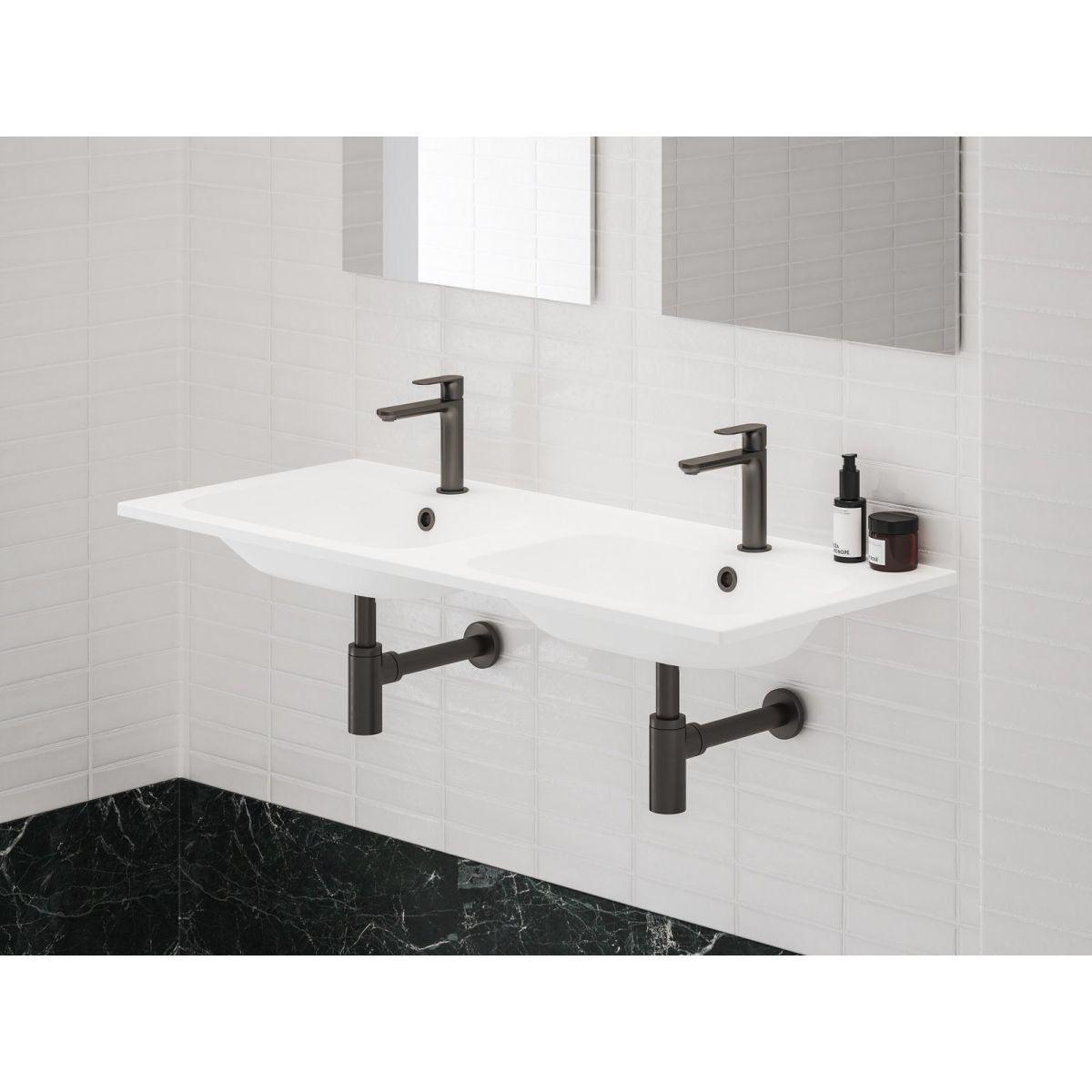 Eleganta álló mosdócsap, pop-up leeresztő nélkül. Csiszolt grafit felület. Beépített szellőző EcoFlow funkcióval.